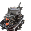 Мотор запускается ручным стартером, а управляется стандартным румпелем с поворотной ручкой газа (гашеткой мотоциклетного типа) с анти-проскальзывающими насечками. На ручном стартере предусмотрена блокировка, ен позволяющая запускать мотор при включенной передаче (запуск возможен только на нейтрали).